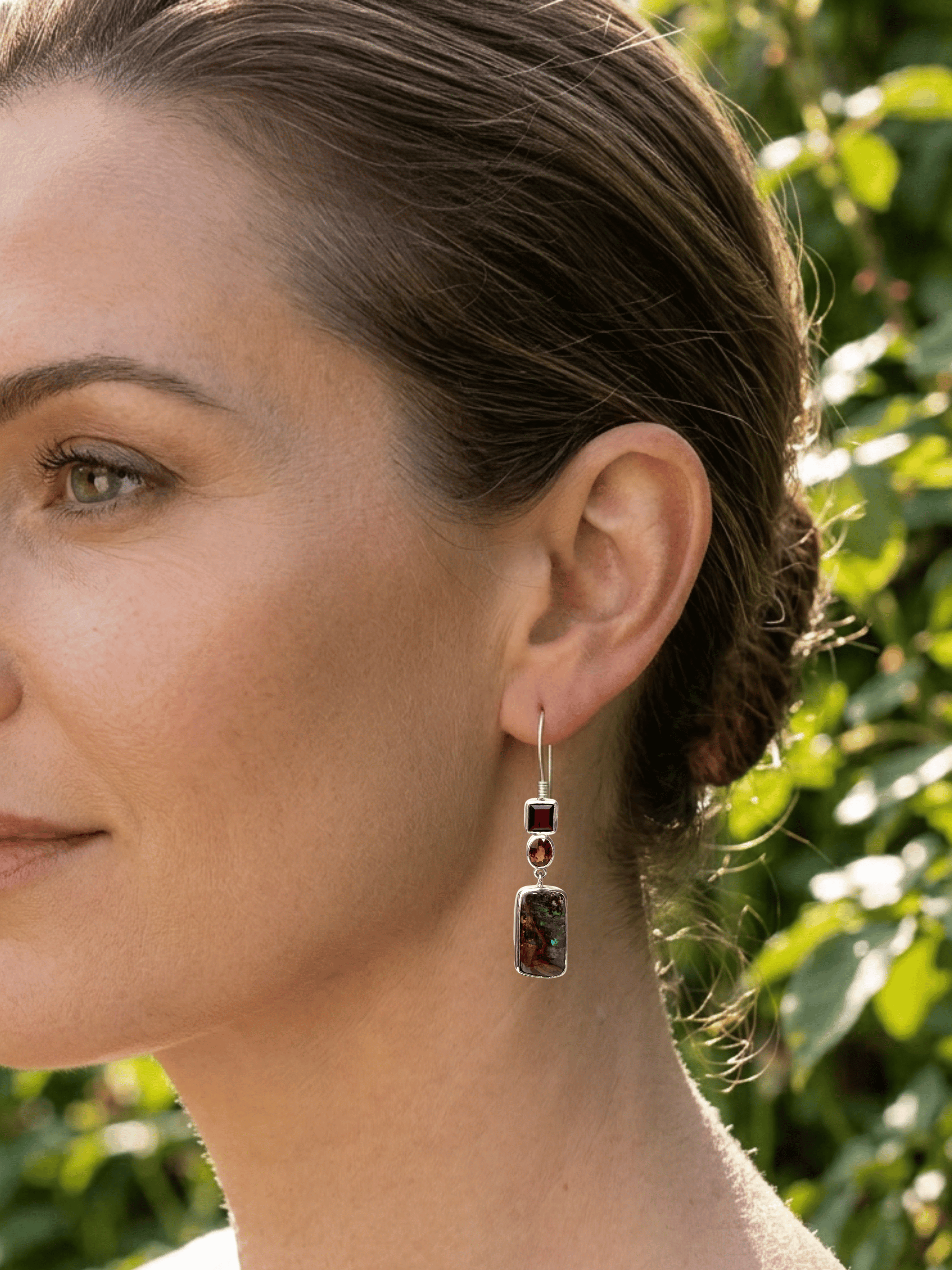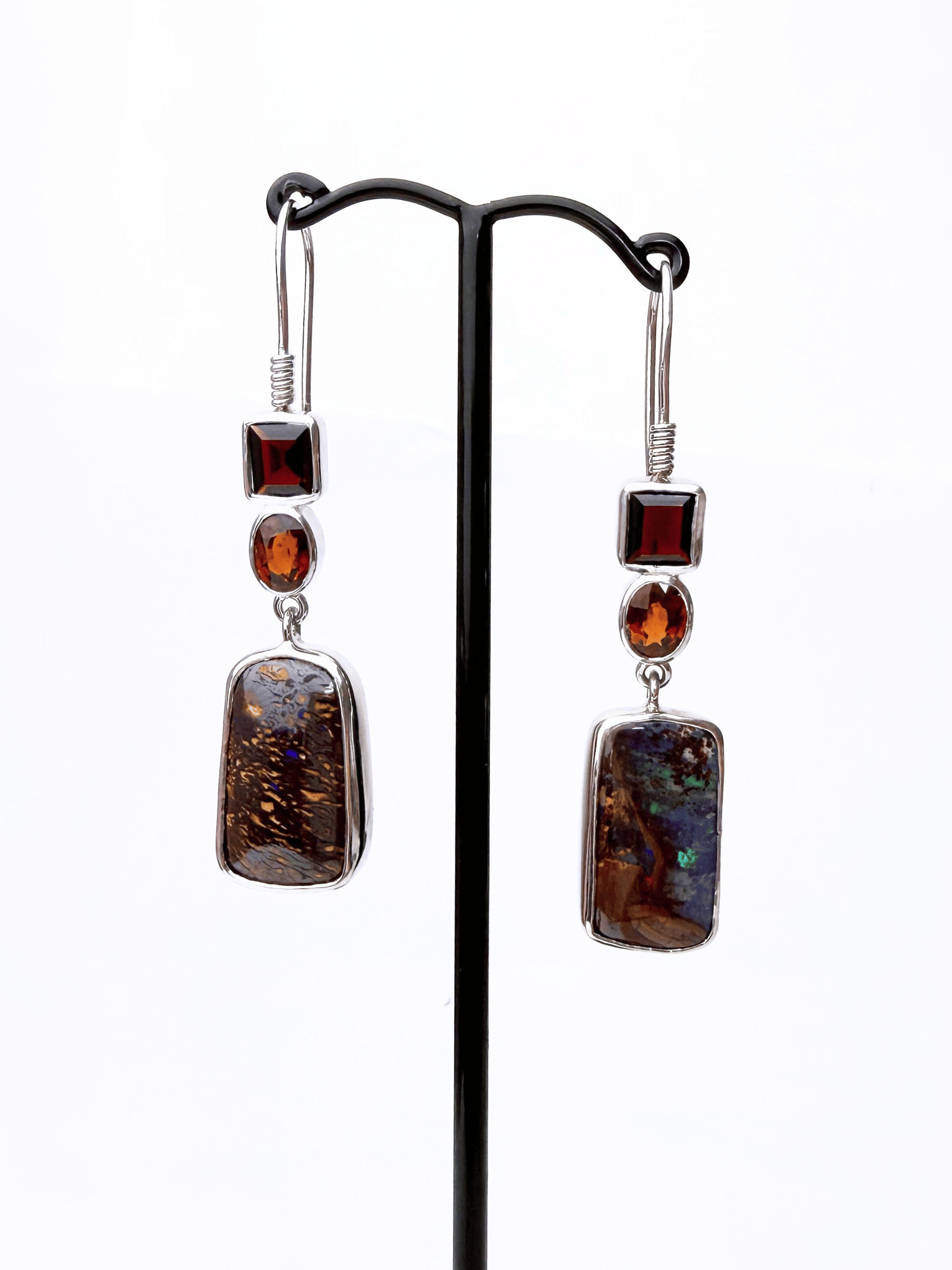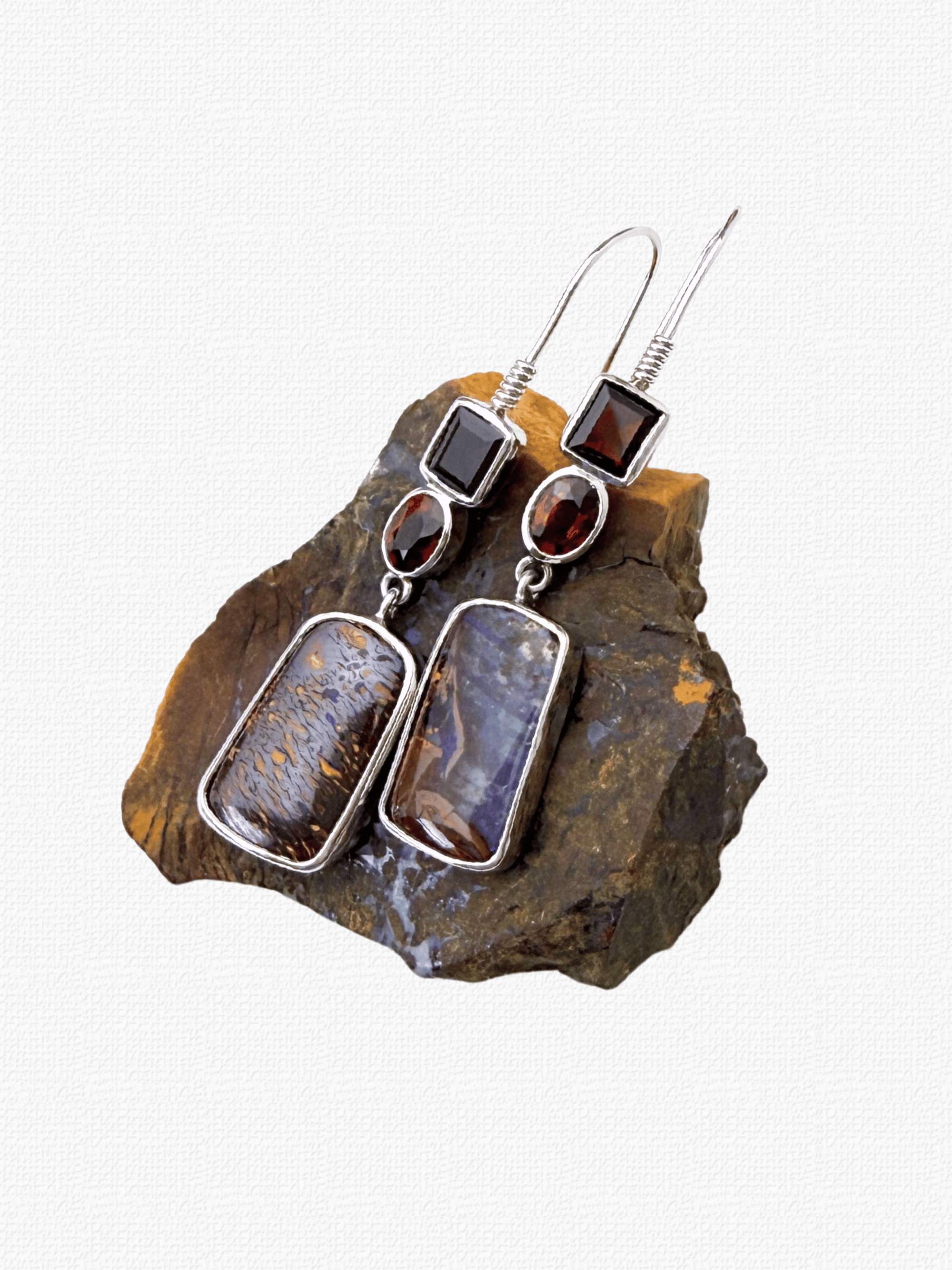 Welcome to the January Birthstone Garnet Collection, Australian boulder opal jewellery paired with garnet for bold contrast and warmth. Garnet is best known for its deep red glow, but it actually comes in many colours and types, from rhodolite and hessonite through to rare green tsavorite. We love how garnet’s rich sparkle lifts the opal’s natural ironstone depth and shifting colour play, creating pieces that feel earthy, refined, and completely one of a kind.