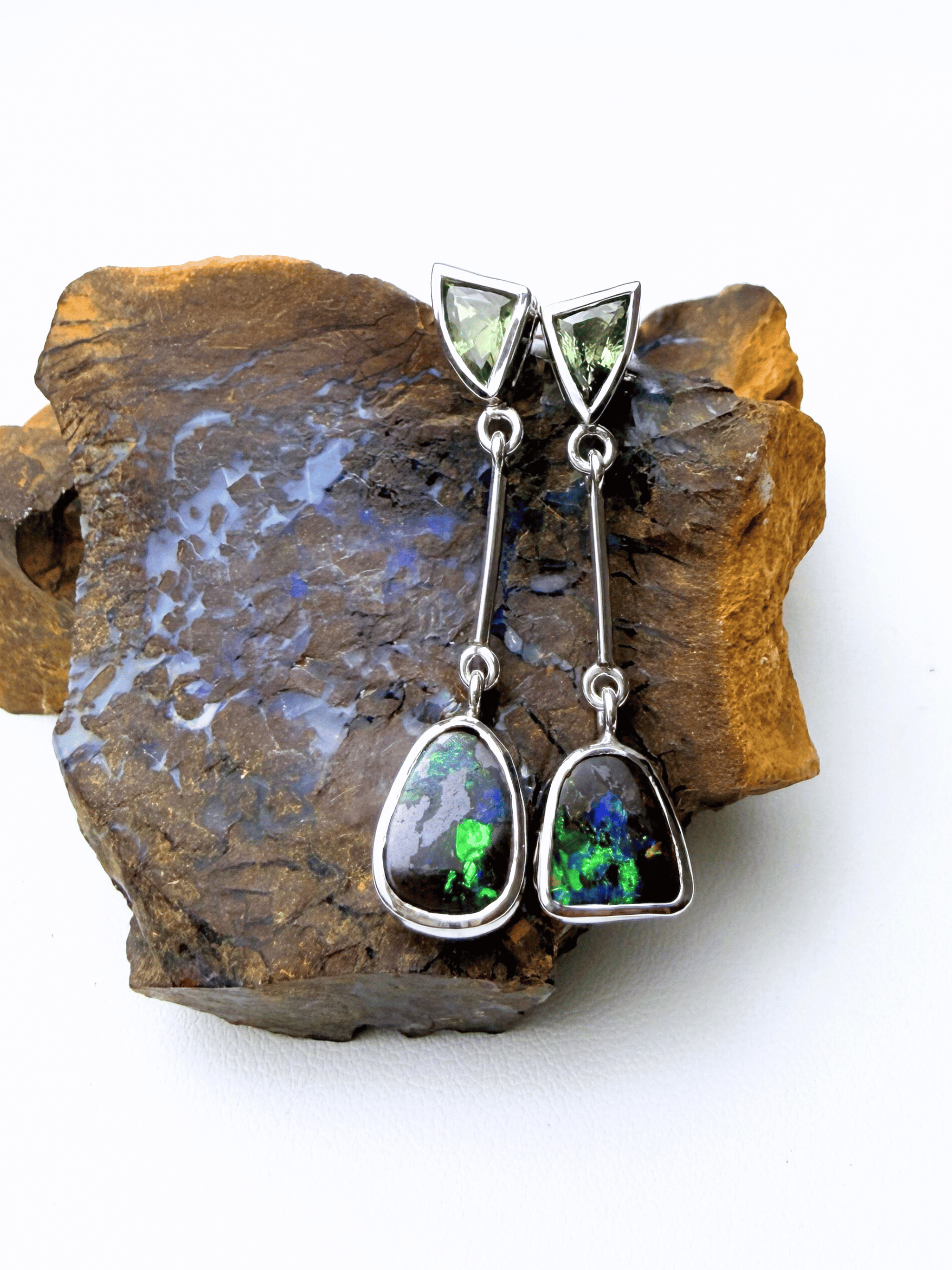 Explore opal and sapphire earrings, pendants, and statement pieces handmade and bezel set in sterling silver and 18k gold. Wherever possible, we choose Australian sapphires, especially stones from Queensland, so your piece is a true slice of Australia, Australian opal, Australian sapphire, and Australian craftsmanship in one.