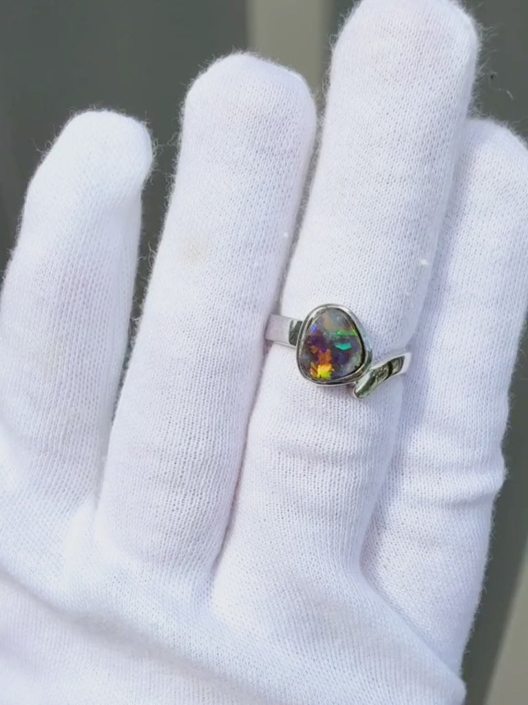 Boulder Opal Bold Colour Silver Ring