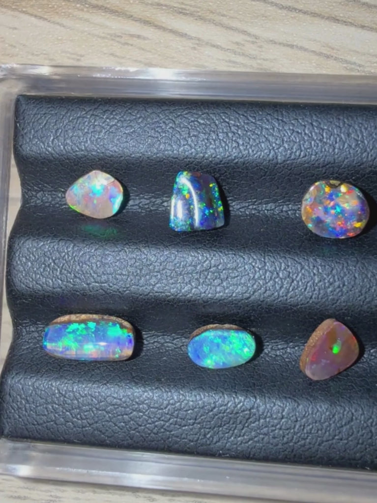 Each opal measures around 5mm, making them perfect for mixing and matching with other opals or gemstones to create your own unique jewellery designs. These tiny treasures shimmer with flashes of blue, green, and red fire. Ideal for earrings, stacking rings, or accent stones in custom pieces.